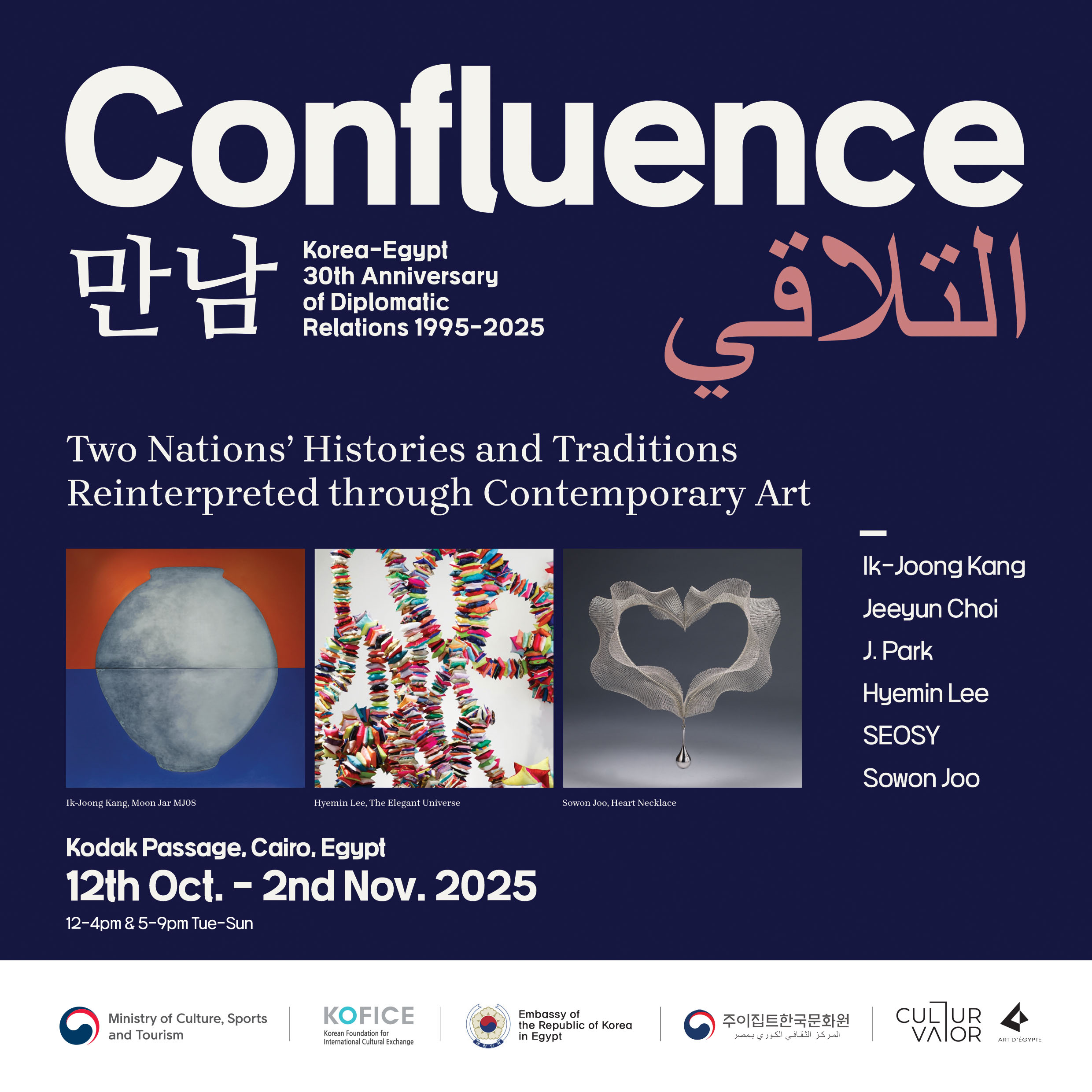 This exhibition is organized by KOFICE (Korean Foundation for International Cultural Exchange), an institution designated by the Ministry of Culture, Sports and Tourism of Korea to oversee international cultural exchange. This exhibition, where Korean and Egyptian cultures meet, becomes a space to remember the past, reflect on the present, and imagine an aesthetic dialogue for the future.