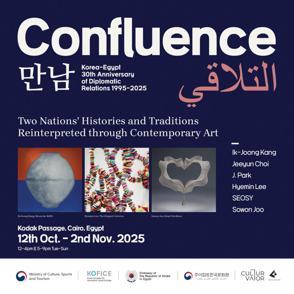The exhibition “Confluence,” celebrating the 30th anniversary of diplomatic ties between South Korea and Egypt, brings together the two nations’ rich histories and traditions, reinterpreted through contemporary art. Both South Korea and Egypt, with civilizations stretching back thousands of years, take deep pride in their cultural identity and aesthetics. At the same time, they actively share their heritage with today’s world.